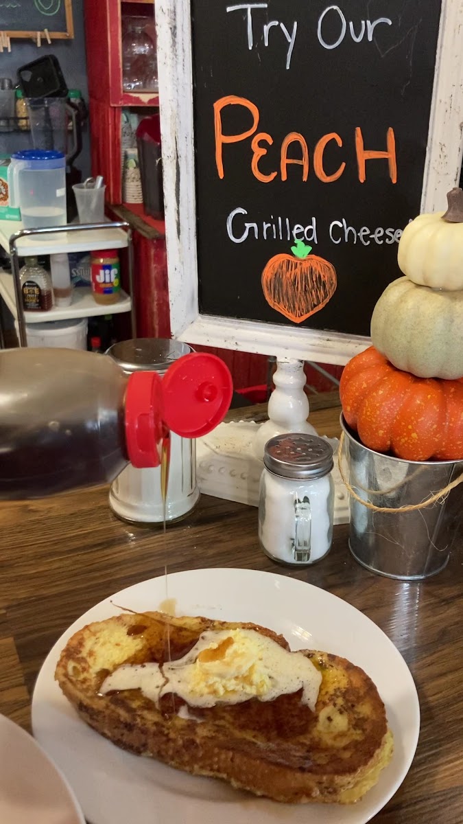 Went there for breakfast. Wonderful atmosphere in my opinion. It feels cozy and happy. I was impressed with their seasonal options. They seemed so unique. I got the pumpkin crisp french toast. It was delicious and was a large portion size. I would love to go back here for other seasonal dishes.